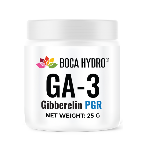 Boca Hydro Gibberellin (GA₃) 90% is a high-purity plant growth regulator designed for professional horticulture, research, and tissue culture applications. Gibberellins are natural plant hormones that promote cell elongation, break seed dormancy, and stimulate uniform germination and vigorous growth.